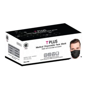 T Plus Medical disposable Facemask หน้ากากอนามัยทางการแพทย์ 3 ชั้น สำหรับผู้ใหญ่ สีดำ